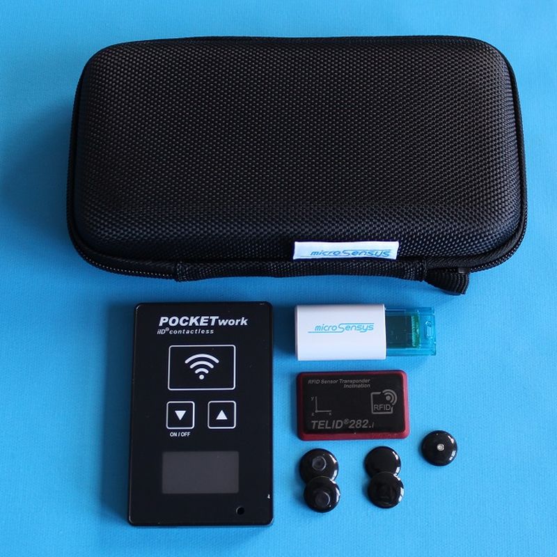 Mobiles Komplettpaket mit TELID®200 Sensoren, POCKETwork Reader und Transportkoffer für den Außendienst.